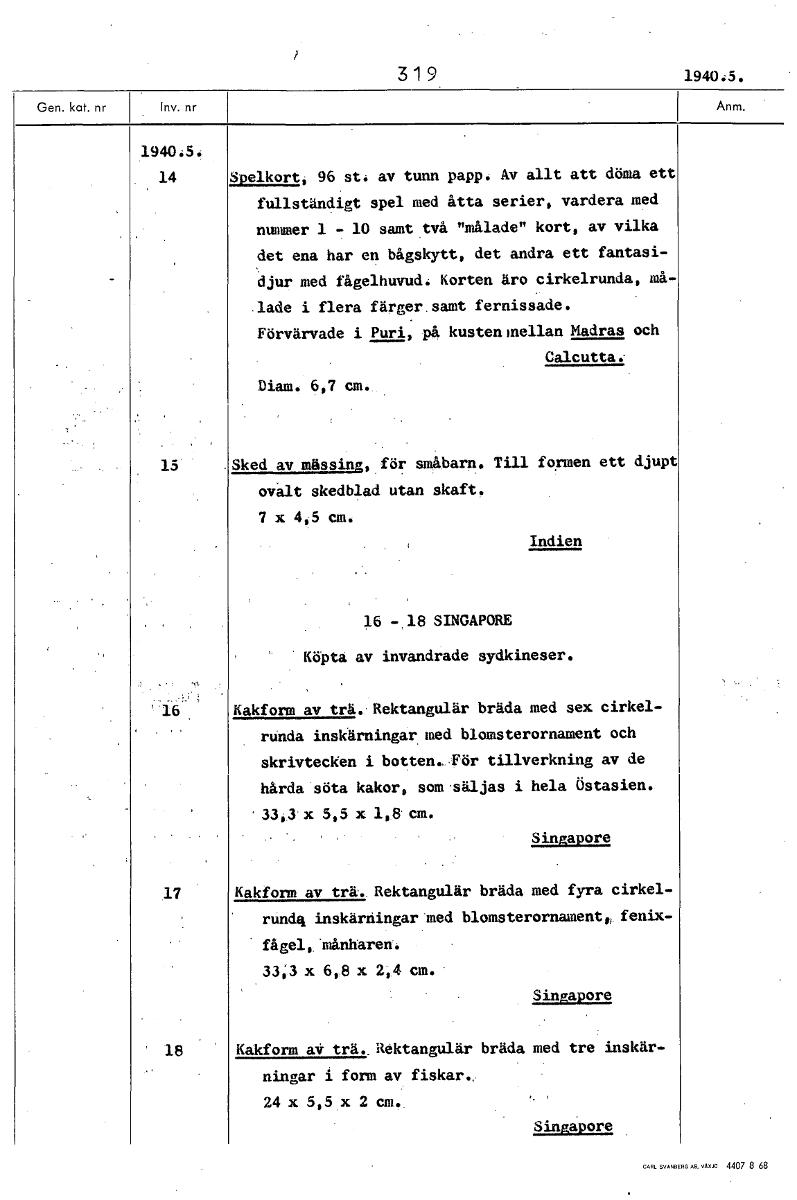 • Boksida ur Etnografiska museets generalkatalog.