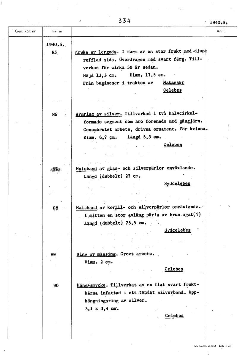 • Boksida ur Etnografiska museets generalkatalog.