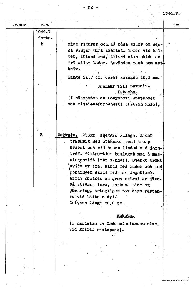 • - 22.- r•- 1944.7.: 1944.7 forts. 2 miss figurer och på häda• sidor om des- sa ringarTunt skaftet. Bäres vid bäl- tet, ibland:med;:ibland utan skida av trä eller läder. Användes mest som mat kniv. Län... Visa hela