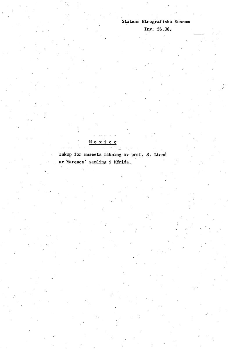 • Statens Etnografiska Museum Inv; 56.36. Mexico Inköp för museets räkning av prof. S. Linne ur Marquez' samling i Merida. [ocr]