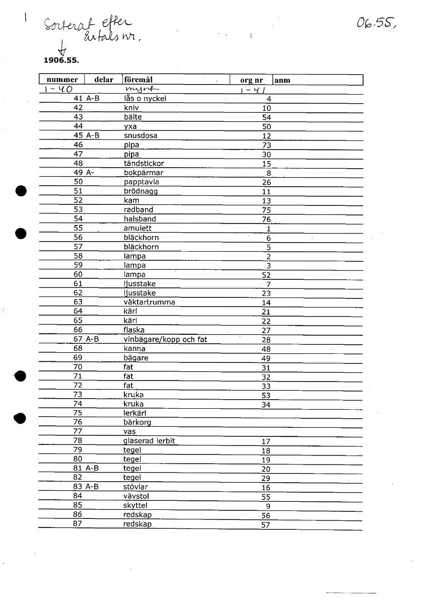 • eY&L OG .SS, gutd6AA vv-t 1906.55. nummer delar föremål org nr anm — vy.4.3 fil 41 A-B lås [ocr]