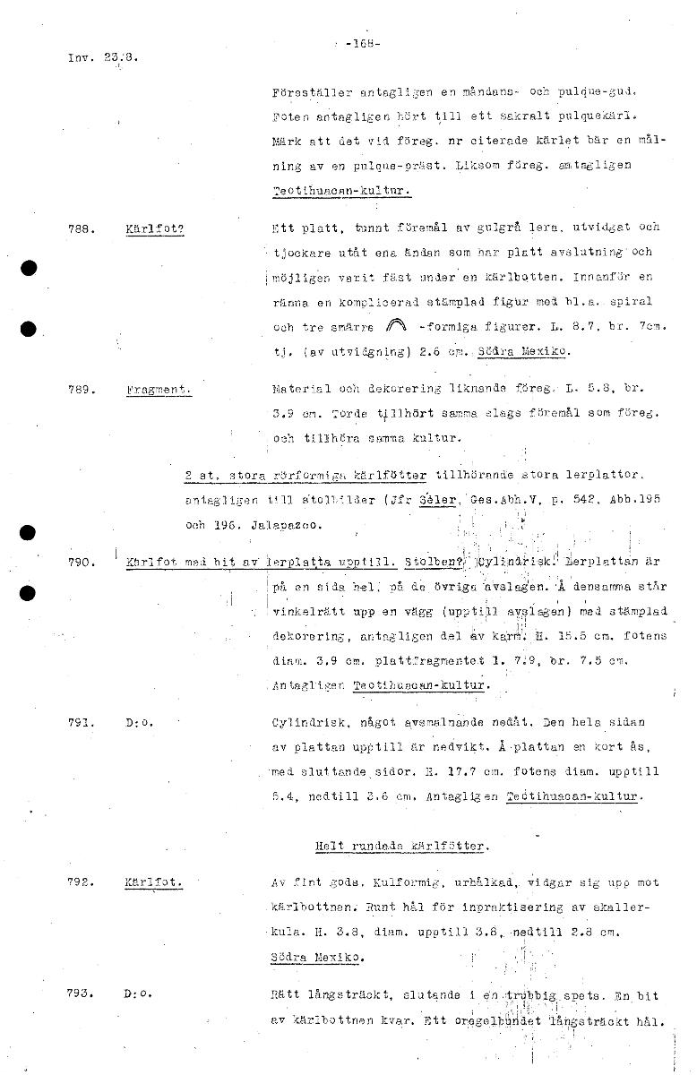 • -168- Inv. 23.8. Föreställer antagligen en måndans- och pulque-gud. Foten antagligen hört till ett sakralt pulquekärl. Märk att det vid föreg. nr citerade kärlet bär en mål- ning av en pulque-präst. L... Visa hela