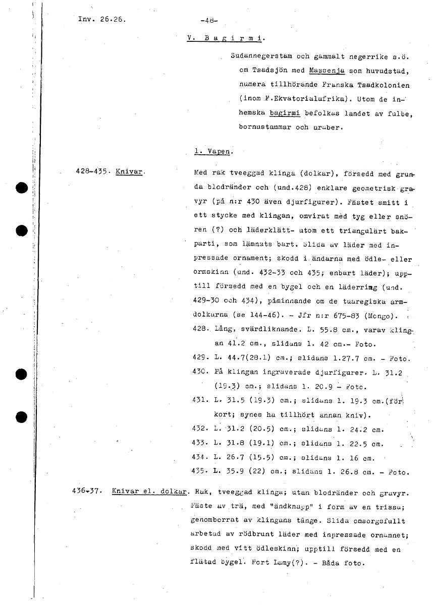 • Inv. 26.26. -48- • V. Bagirm i. Sudannegerstam och gammalt negerrike s.ö. om Tsadsjön med Massenja som huvudstad, numera tillhörande Franska Tsadkolonien (inom .F.Ekvatorialafrika). Utom de in-. hemsk... Visa hela