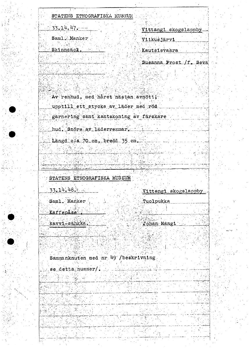 Källa <presOrganization> Statens museer för världskultur - Etnografiska museet