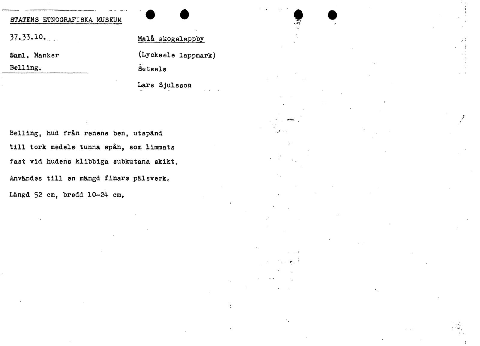 | Källa <presOrganization> | Statens museer för världskultur - Etnografiska museet |