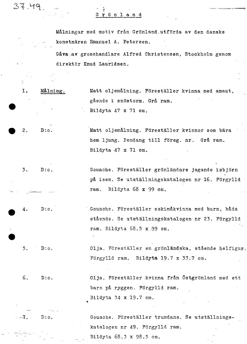 • 3 ,901, Grönland Målningar med motiv från Grönland.utförda av den danske konstnären Emanuel A. Petersen. Gåva av grosshandlare Alfred Christensen, Stockholm genom direktör Knud Lauridsen. Målning. Mat... Visa hela