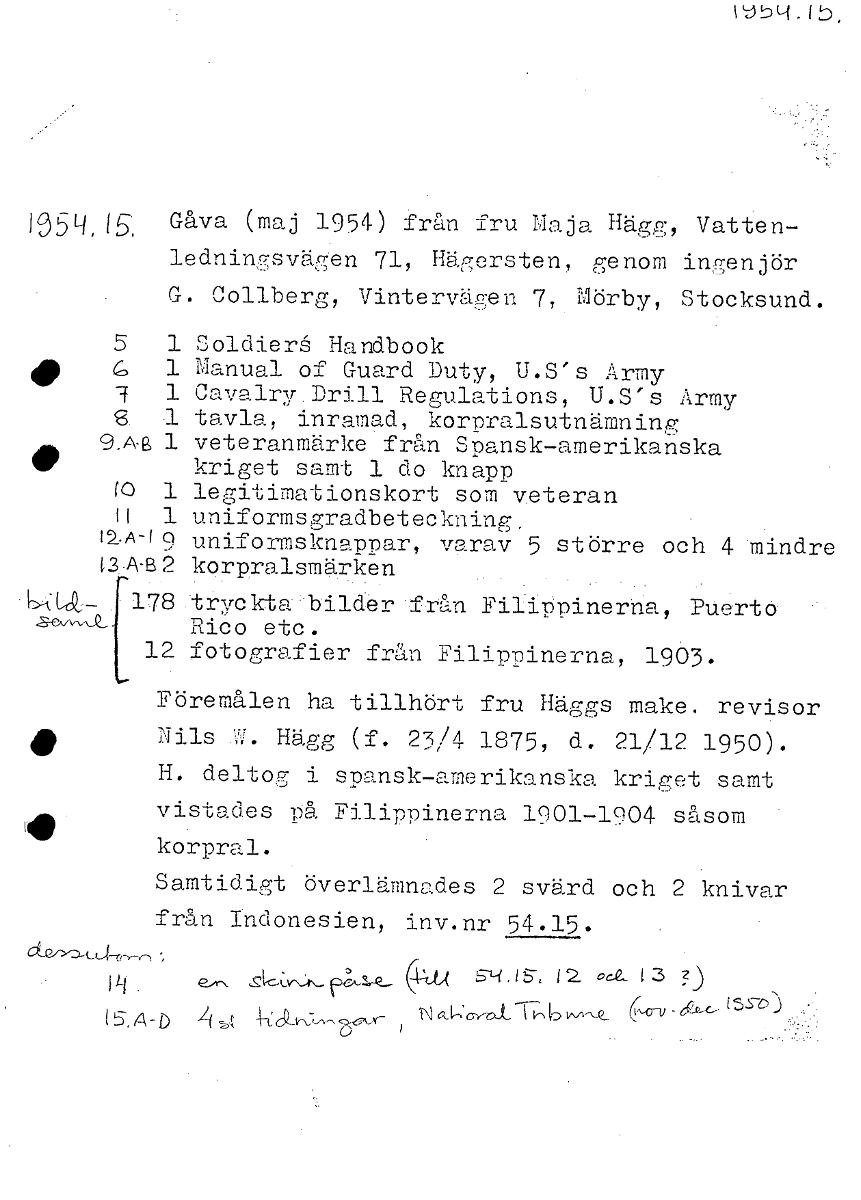 • PJ5(-1. Ib, 1354,15, Gåva (maj 1954) från fru Maja Hägg, Vatten- ledningsväg'en 71, Hägersten, genom ingenjör G. Collberg, Vintervägen 7, Mörby, Stocksund. 5 1 Soldierå Handbook IP G 1 Manual of Guard... Visa hela