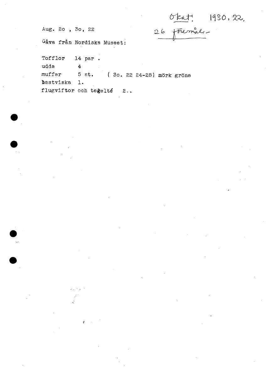 | Källa <presOrganization> | Statens museer för världskultur - Etnografiska museet |