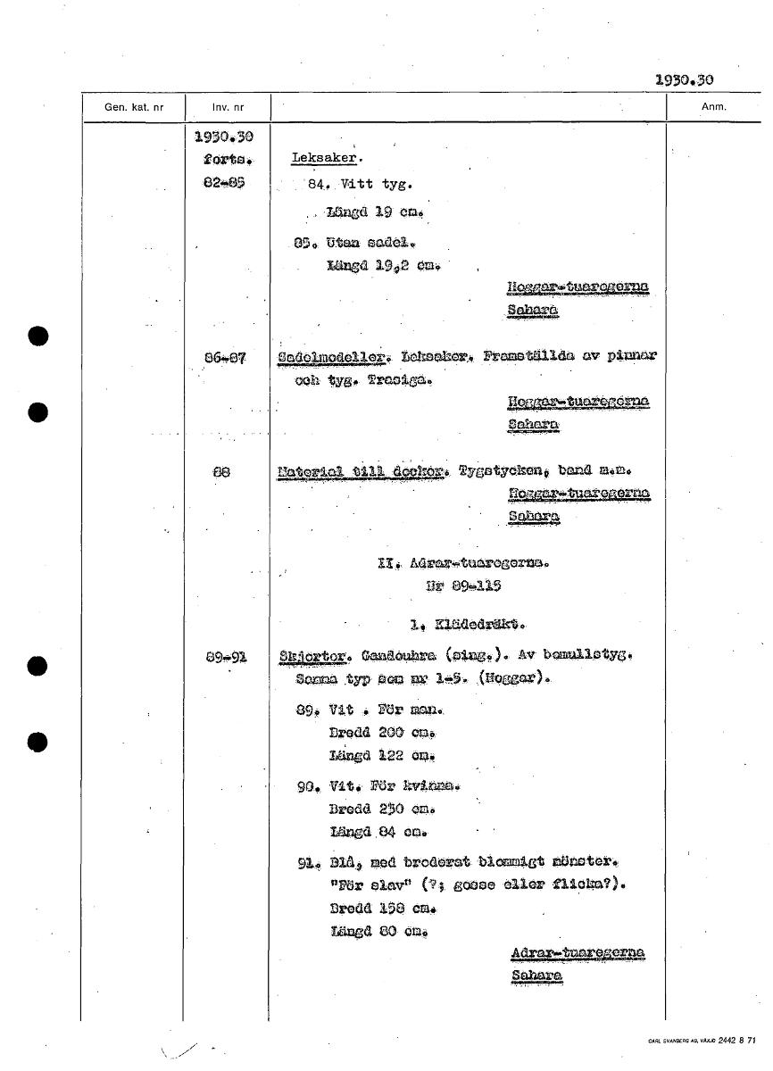 1930•30 193040 leksaker. 84. Vitt tyg. 74ned 19 eti, 050 U.tan sadel. Länsa om. Hop Sahara 96,07 sadolmodall9r4 tanda av pinnar och tyg. ux-'41.1g£4.92Pa t ri 1 do-eilörc gatyoke% band lusa* ar.i.tuaro:erna SrshkAra 11, Adrar-m uaroge, 89,>115 1.KlUdadr'äk. SItiortoro Gandouhra (atue.). irbatuallotyo* Selma typ gionIW 1.t.3. .(119Esear)<, 39,f Vit p Var Malat, 13redd 2O0 ora,<› ånga 122 ou, 90. Vits. •P4r kyl». Brodd 230 oro Lusa e4 orai, 1a9 med broderat blennlat inthlatora, "Par allavr'(;,gatee anor 1'3140)0 Brodd 13& omö Tilred 80 om° [ocr]
