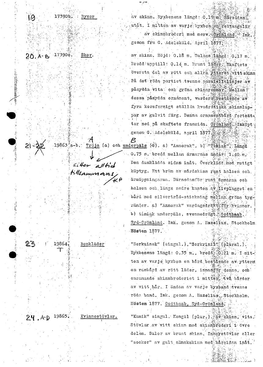 . • , hv skinn. Byxbenens länW1-:i0,1 Ts2Alan' .,:utåt. 1mitten-av varje'.7byxben rektangUlär av åkinnbrbderi med • 1äx1ind•I•nk. .j genom fru 0. Adelsköld. April 1871 • av skinn. nöjd: 0.18 m. Sulans...