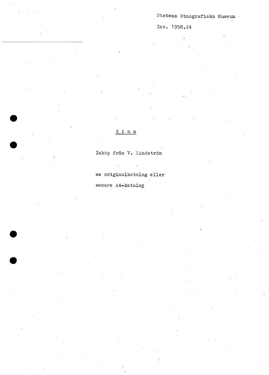 • Statens Etnografiska Museum Iny. 1958.24 Kina Inköp från V. Lindström se originalkatalog eller senare A4-katalog • [ocr]