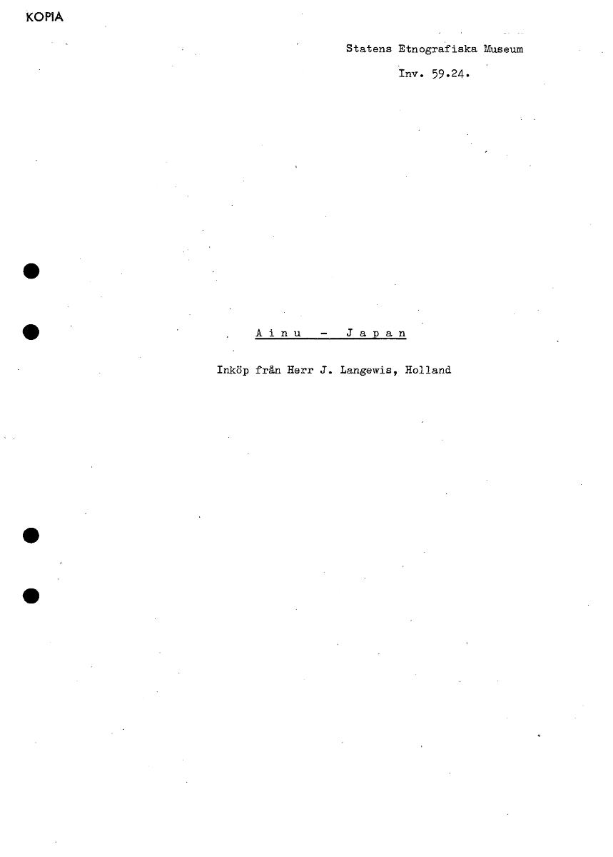 • KOPIA Statens Etnografiska Museum Inv. 59.24. Ainu - Japan Inköp från Herr J. Langewis, Holland • [ocr]