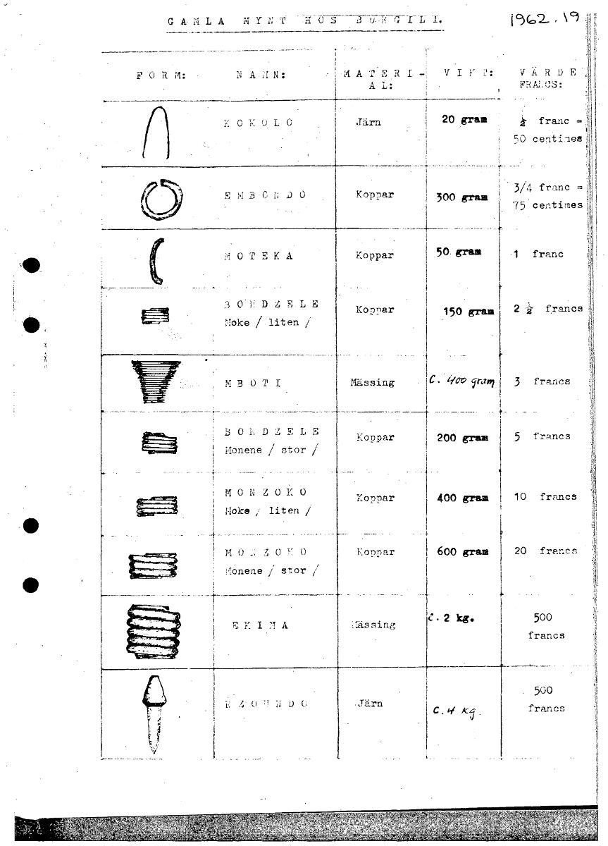 • i 562- !; • PI (JR M: N A il N: L: 0 K .Tarn 20 gram franc = 50 centines J3h E e n i) 0 Koppar 300 gram 3/4 franc 75 centimes 1 Koppar 30gram 3 0.^1 D i L E Koppar francs 150 gram Noke / liten / 3 fra... Visa hela