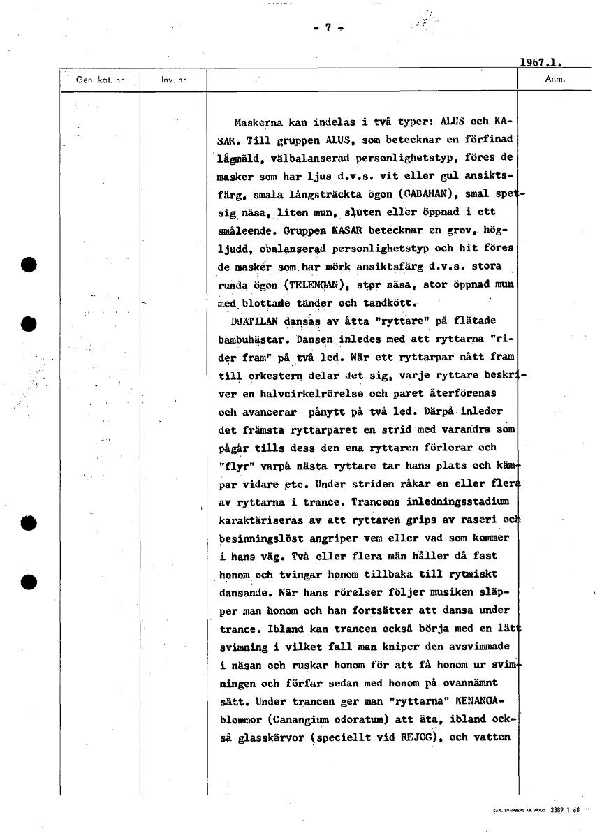 1967.1. Maskerna kan indelas i två typer: ALUS och KA- SAR. Till gruppen ALUS, som betecknar en förfinad lågmäld, välbalanserad personlighetstyp, föres de masker som har ljus d.v.s. vit eller gul ansi...