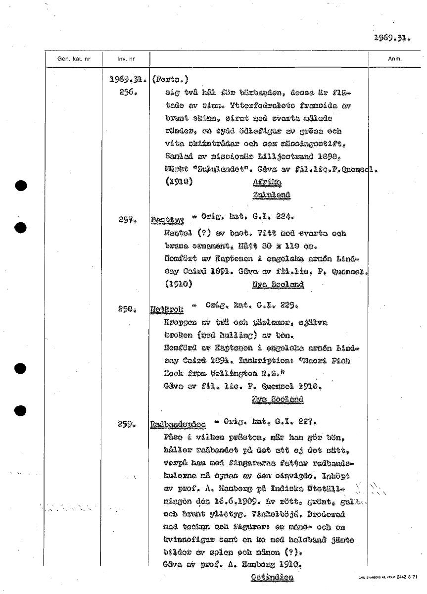 1969.314 1969!k314, (Porte.) 256# alg två hål för Wrbanden0 debaa Ur flä- tade av cina. Yttcrfodraletc frameide av brunt ekinnp sirat Doa eVarta målade rUnder, en eydd Ödleflcu• av grönaoch vita tradar och ed= mäccingoctift. Samlad av maselonUr Lilljestrand 10964 MUrht ""Zululandotn. G&Ta, ev eil.lic.P.Quo (m) Afrika 412122a Btlstima k., Orig. hat., G..10 2240. Mantel (?) av baet4 Vitt bod 'svarta och bruna crnamott. 14,t14 20 x 110 QM0 nomfört av 30Ptonon å on6CIalla arn6n Lind eay Oaird 10910 Gara T fil41ie4 P4 Quoneel, (1910) 11442,919A nethrok 0040? hat. 0,4,4 2254 KroPPen av trål och par1000r4 ojalva kröken (eed hulling) av ben. Homförd av EaDtenan t Ongeltha arM-dn cay Ca ird 10910 InchriPtionl naorå Pith Ilook.fecon. Wellington 'ff.Z.41 Gåva av f14#. llo. P! Natsel 1910. o/nd 259D 2gdhang49112 " "la' 227' Pabö i vilken prUctOniy Vg4 han gOr bön9 håller radbandct Pa dOt att 03 det oätto varPa han Med fingararna fattar radbande- kulorna ma cYnac av den oinvågdö. Inköpt av Prof. A. ffamborg Pa Indicka UtatUll- y nini3On 4dc 16.6.1909. Av tötto 'Dat. øcI blu"t YllötY(3. Vinho1bö3d4 proderaa med tocken Och flenrarg ep otneä. on hvintOfignr camt on 40 mod halChand ;jämte bildor av Olon Och nation (?),. Gava PV Prof. A. nambOrg 2£115344ga, [ocr]