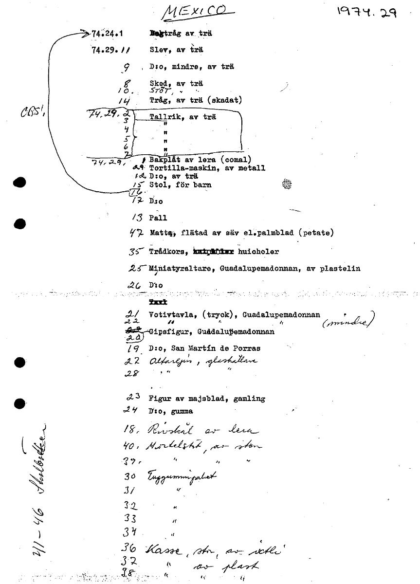 4/c1:15/Y.Lr-0--- vcr9-4, '19 74.24.1 ~tråg av. trä 74.29. // Slev, av trä 9 Dzo, mindre, av trä g Sked, av trä Tråg, av trä (skadat) y, b .724 rBa•plåt av lera comal) Tortilla-maskin, av metall td4D:o, av trä /S' Stol, för barn Dso /.3 Pall • 9?. Matts,' flätad av säv el.palmblad (petate) Trådkors, katOkblEr huicholer .24—Miniatyraltare, Guadalupemadonnan, av plastelin 6, Dlo Staczt ,ti Votivtavla, (tryck), Guadalupemadonnan ipsfigur, Guadalupemadonnan t q D:o, San Martin de Porras 22 c2,44,4,4 , 023 Figur av majsblad, gamling r4o, gumma , it401_44442 7 [ocr]