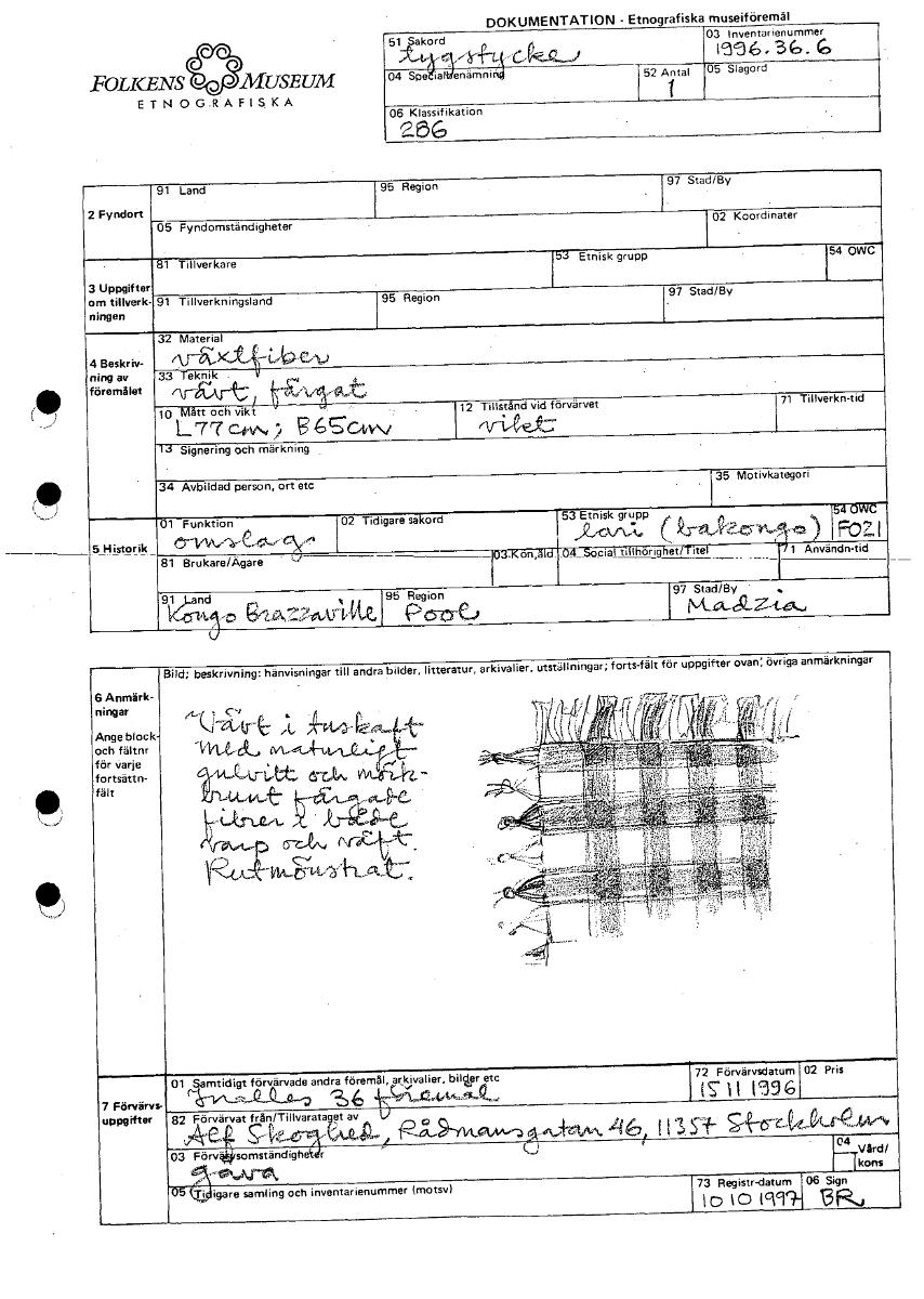 | Källa <presOrganization> | Statens museer för världskultur - Etnografiska museet |