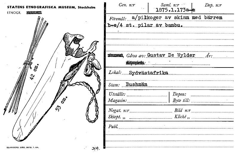 • Katalogkort ur Etnografiska museets arkiv.