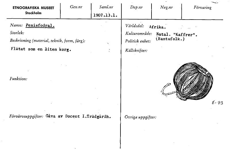 • Katalogkort från Etnografiska museets arkiv.
