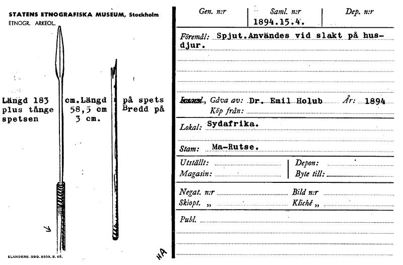 • Katalogkort från Etnografiska museets arkiv.