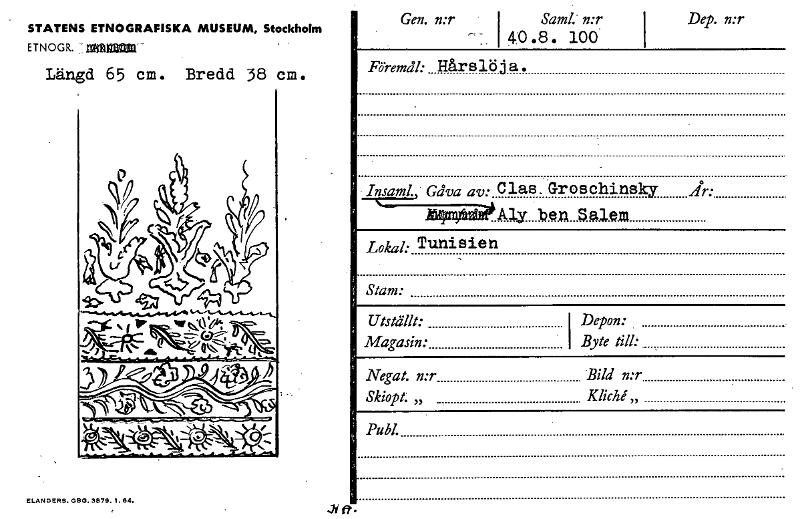 • STATENS ETNOGRAFISKA MUSEUM, Stockholm ETNOGR. !I■44.0 Längd 65 cm. Bredd 38 cm. ELANDERS. GBG. 3879. 1.84. Gen. n:r Samt n:rI 4.0.8. 100 Dep. n:r Insaml., Gåva av: Föremå• Hårslöja. Clas_ Gr oschins... Visa hela