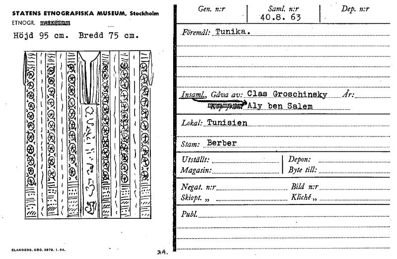 STATENS ETNOGRAFISKA MUSEUM, Stockholm ETN OG R. ~in Höjd 95 cm. Bredd 75 cm. ....... ?., •M ..t, , Im!, ue‹ .1v< fåt 2.4 -.-_—_. i•‘ --• e. 14 , , i ii J 14 ( / \ ..t.c,4 ..t.c,4...,,.._ a ar-nn A, ayx .__ __ .• - - • ,/ -_-_-_- I i .... i i i i , ..' , \ ...-____.--\ n 21 1,2 rex, i'li Ida. .=.--.--.. , ,. -- , 5 t (94 G IG I I, ..• .--.-- ..—.-- , ,e % __ ~ ELANDERS. GBG. 3E179. I. 64. Gen. n:r Sard mr 40.8. 63 Dep. n:r Föremål: Tunika. Insaml„ Gåva av: Clas Groschinsky År: Aly ben Salu ''' niff)191k0 Lokal: Tunisien Stam: Berber Utställt: Magasin: I Depon: I Byte till: Negat. n:r Bild n:r Skiopt. „ Klich6 „ PubL [ocr]