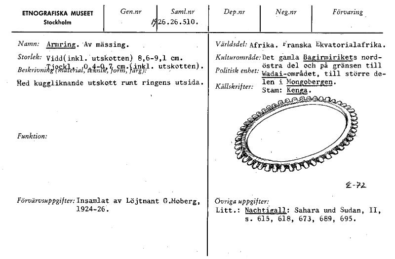 • Katalogkort från Etnografiska museets arkiv.
