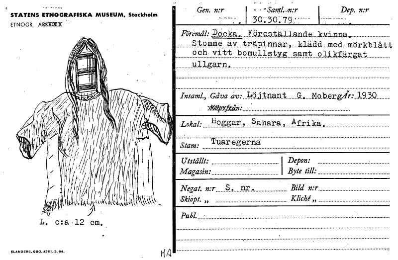 • Katalogkort från Etnografiska museets arkiv.