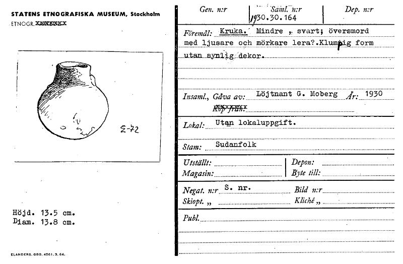 • Katalogkort från Etnografiska museets arkiv.