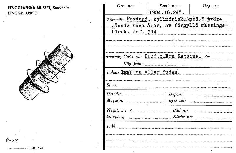 • ETNOGRAFISKA MUSEET, Stockholm ETNOGR. ARKEOL. t-73 Gen. n:r I Saml. n:r I Dep. n:r 1904.18.245. Föremål: Prydnad, gående höga åsart av förgylld mässings- bleck. Jmf. 314. 4reftemir, Gåva av: Prof .o.... Visa hela