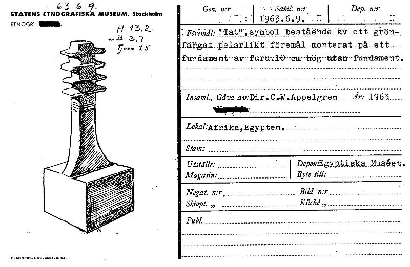 ELANDERS. GBG. 4581.9.54. Gen. n:r . : -.. S-I -, HSahil.- .nfr., 1963.6.9'. - :: I Dep. n:r I .. ' , . . `., . -- FöreMdl: !Y Tat".; eyinböl "" böåtåenilå-ä3rIret t gi^tin- Yätgätitirelårlikt.lfäremål...manterat...på....ett fundament---av-furu-a0----cm----hög---txtan----fundament - Insaml„ Gåva a v:Dir.. Z.M..,App e lgr e n År: .19.63 ~ev LokakkfrikarEgypten. Stam: . Utställt: . I Depon.Egyw.t.i.ek ................ Magasin: Byte till: Negat. n:r Bild n:r Skiopt. „ Klicht; „ Publ. 6 3. 6 - 9. STATENS ETNOGRAFISKA MUSEUM, Stockholm ETNOGR'. Mer B 3, 7 Z [ocr]