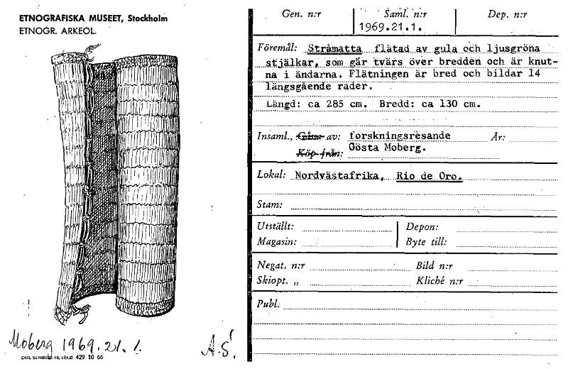 • ETNOGRAFISKA MUSEET, Stockholm ETNOGR. ARKEOL. Gen. n:r Sara 'nr 1969.21.. 1 Dep. n:r dlirtkip, 6i .6q , 29/, /. CARL SVANOM AB. VÄRJO 429 10 66 Föremål: Strkaatta flatad av gula och ljusgröna stjäl... Visa hela