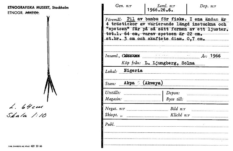 • Katalogkort från Etnografiska museets arkiv.