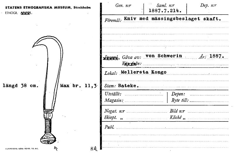 • Katalogkort från Etnografiska museets arkiv.