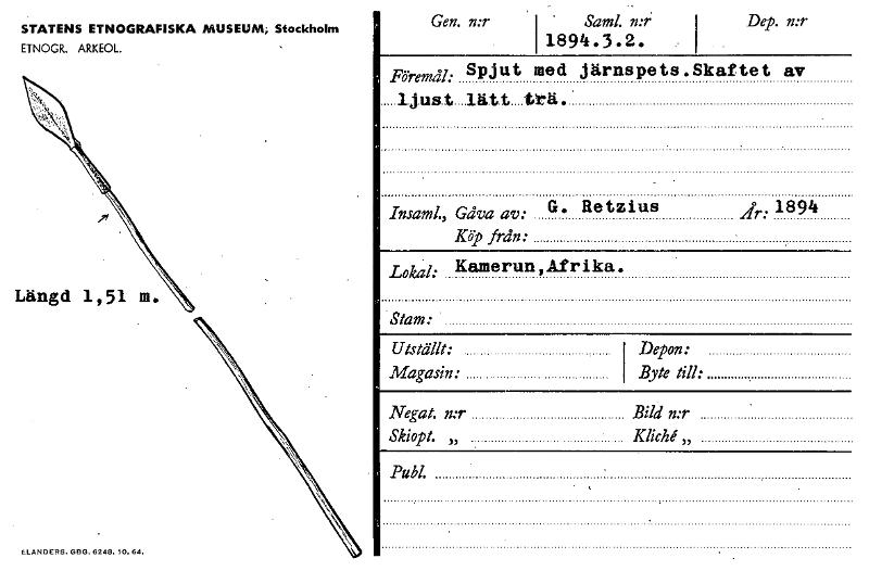 • Katalogkort från Etnografiska museets arkiv.