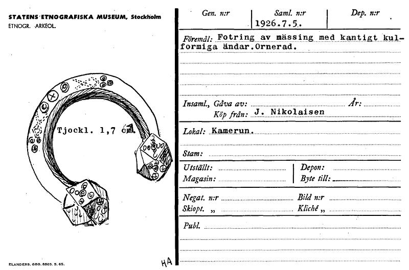 • Katalogkort från Etnografiska museets arkiv.