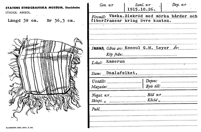 • Katalogkort från Etnografiska museets arkiv.