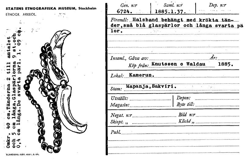 • Katalogkort från Etnografiska museets arkiv.