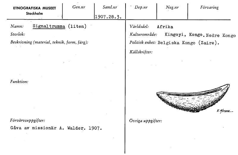 • ETNOGRAFISKA MUSEET Stockholm Gen.nr Saml.nr 1907.28.3. Dep.nr Neg.nr Förvaring Namn: Signaltrumma (liten) Storlek: Beskrivning (material, teknik, form, färg): Funktion: Förvärvsuppgifter: Gåva av mis... Visa hela
