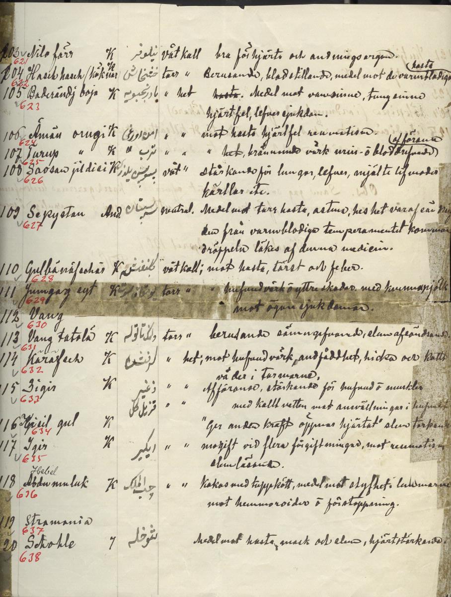 • Sida ur Högbergs egen förteckning och dokumentation över samling 1907.57.