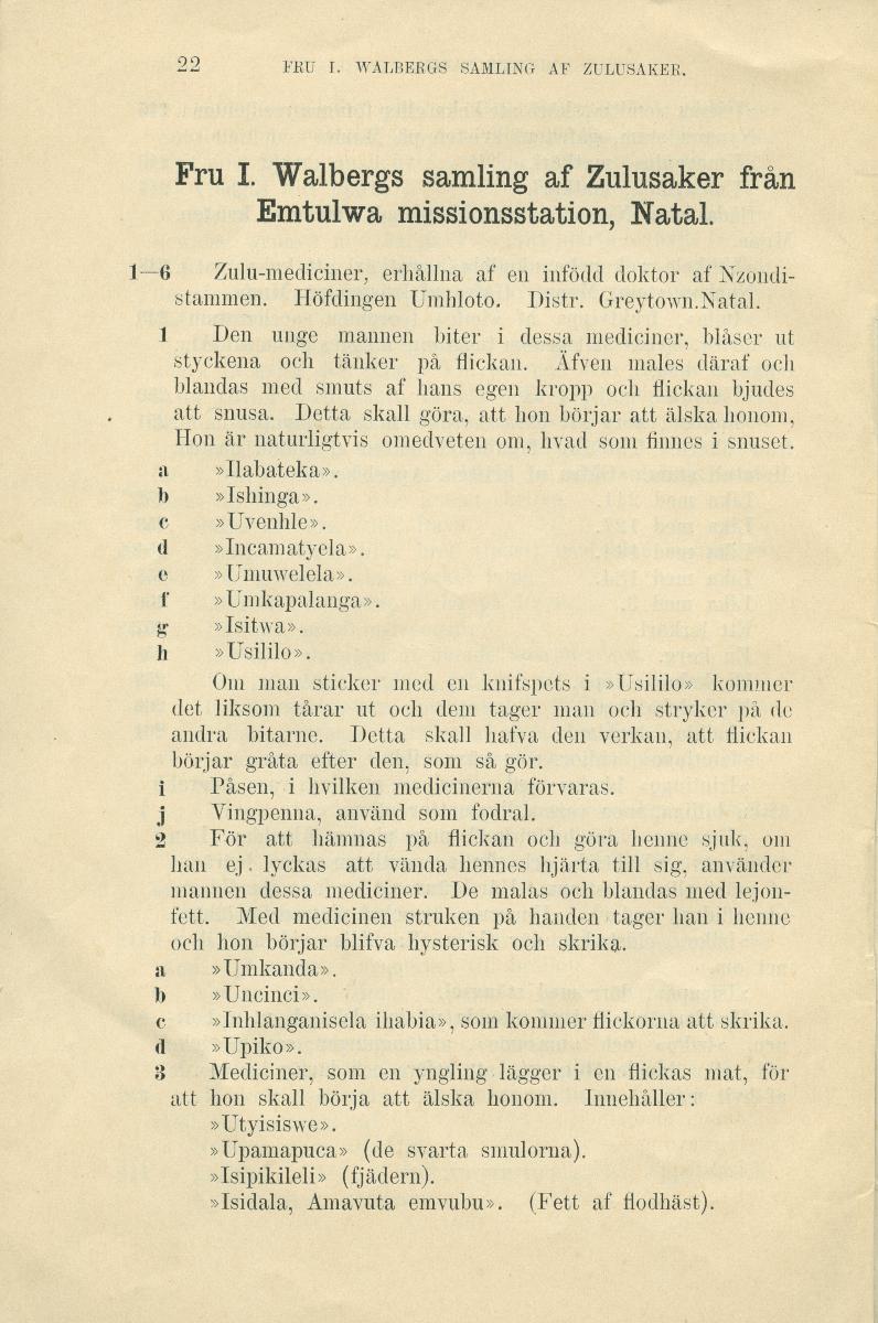 • Fru I. Walbergs samling af Zulusaker från