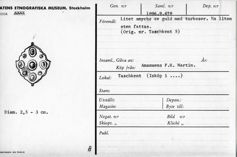 • Katalogkort ur Etnografiska museets arkiv.