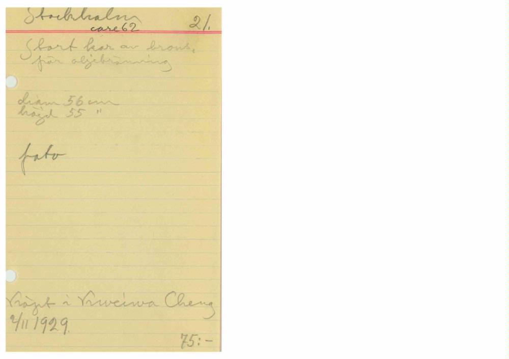 • Kataloglapp ur Etnografiska museets arkiv.
