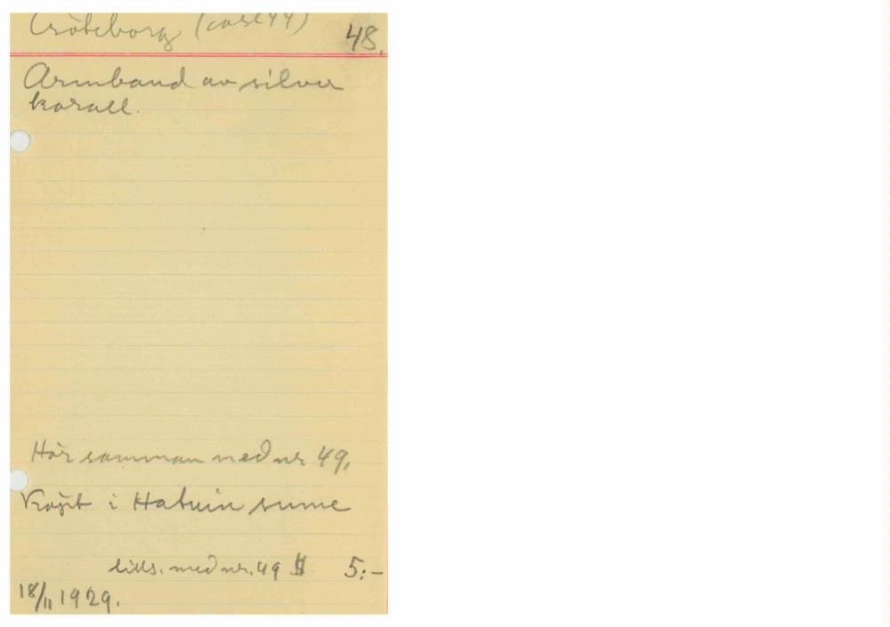 • Kataloglapp ur Etnografiska museets arkiv.