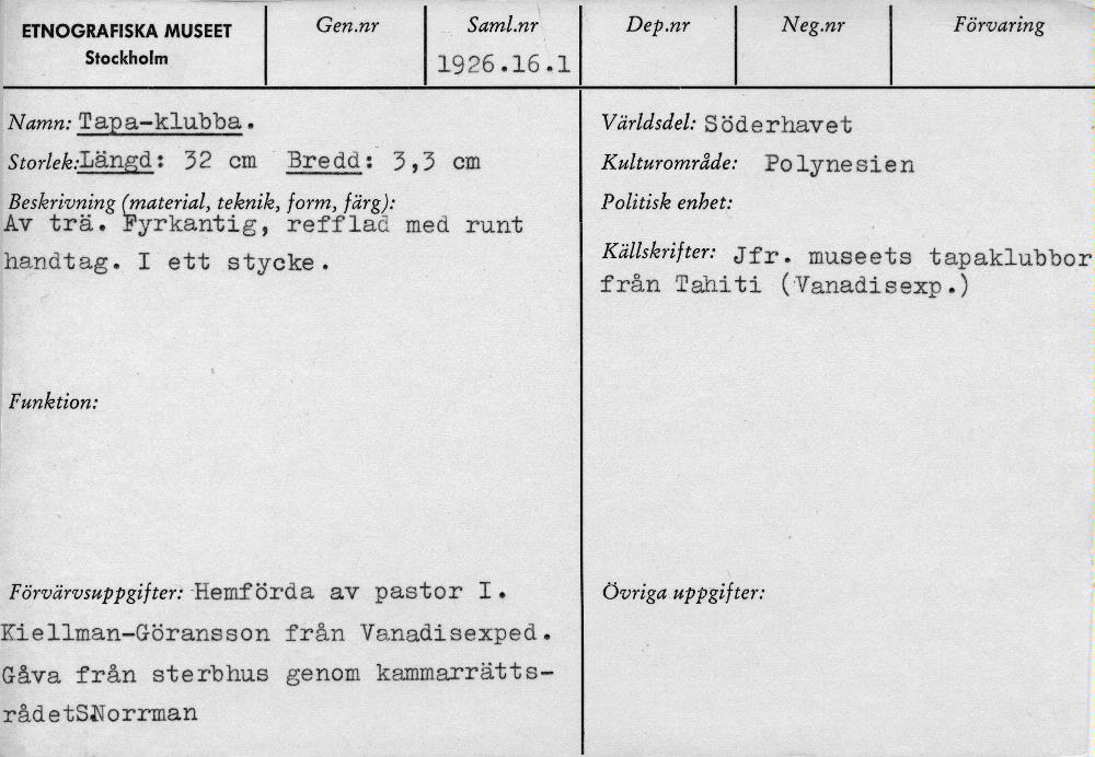 • Katalogkort ur Etnografiska museets arkiv.
