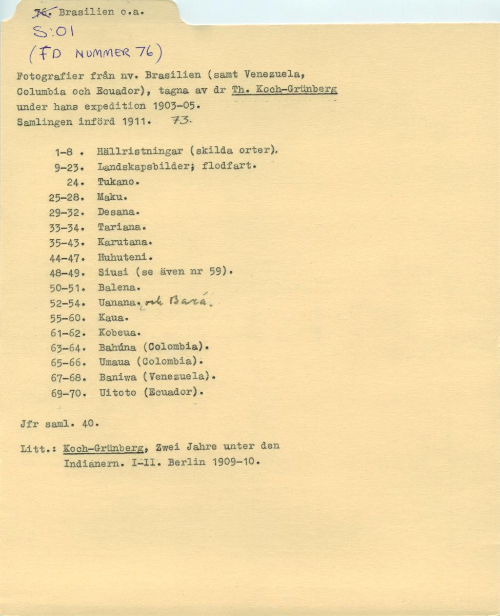 • Katalogkort ur Etnografiska museets arkiv.