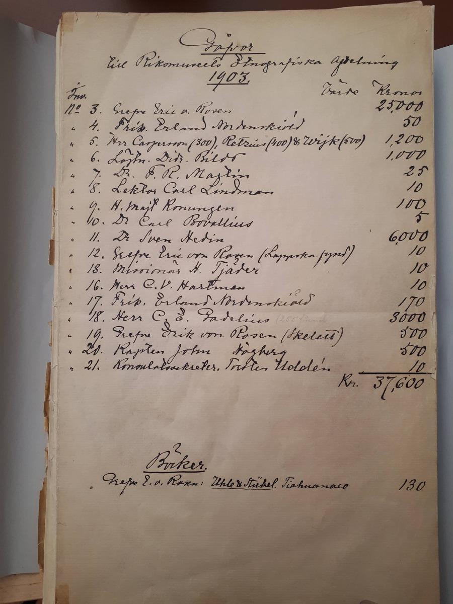 • Gåvor till riksmuseets etnografiska avdelning 1903....böcker Greve von Rosen Tiahunaca