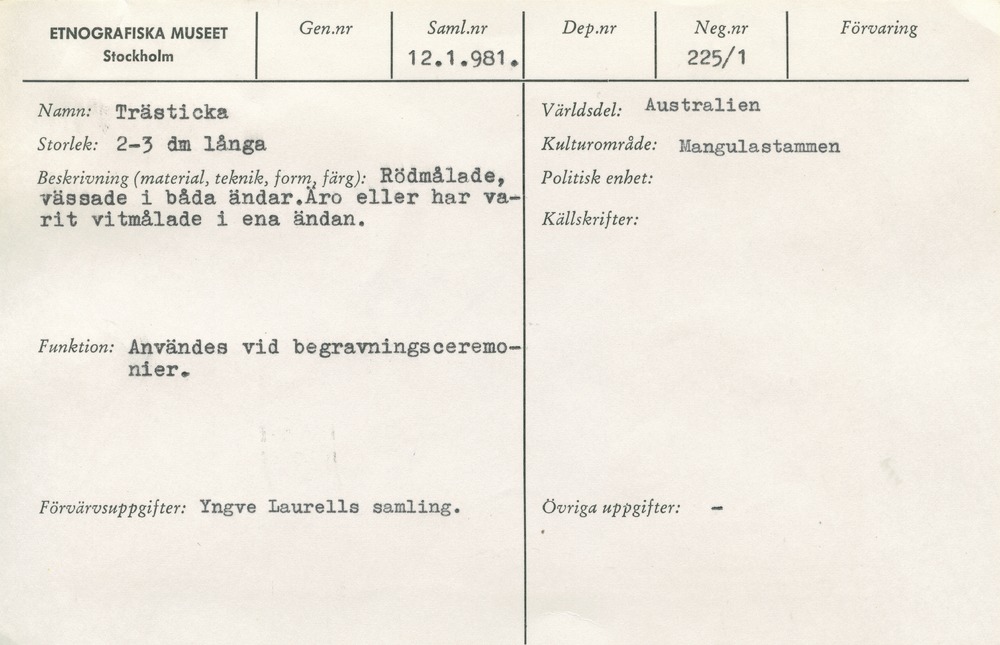 | Källa <presOrganization> | Statens museer för världskultur - Etnografiska museet |
