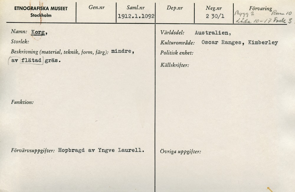 | Källa <presOrganization> | Statens museer för världskultur - Etnografiska museet |