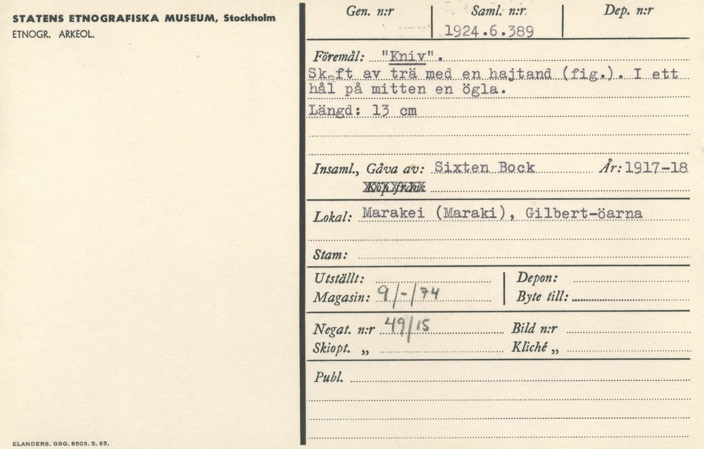 | Källa <presOrganization> | Statens museer för världskultur - Etnografiska museet |